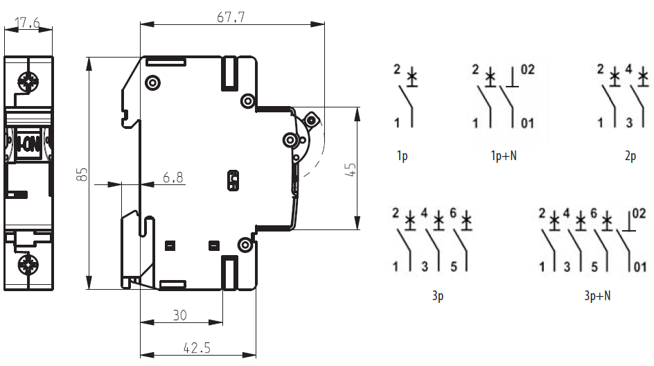 Количество полюсов 1p