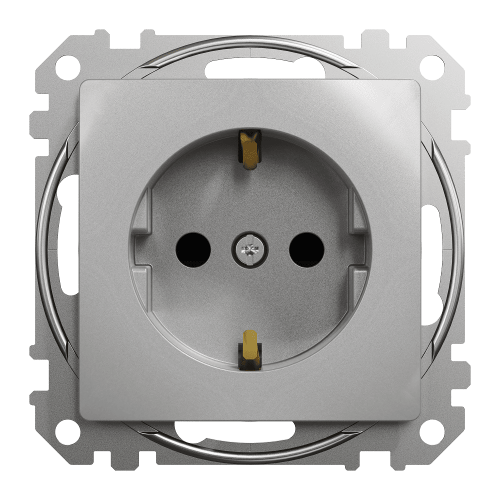 Розетка с заземлением и со шторками Алюминий Sedna Design Schneider Electric SDD113022